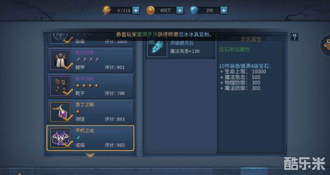 @四十级装备的窟窿数量要少于五十级装备的窟窿数量,特别说一下假如打算个别装备四十级或全装备四十级上四级套的话,要注意下兑换橙色卷轴的时间点,否则时不时弹出的合成或换装提示烦不胜烦。