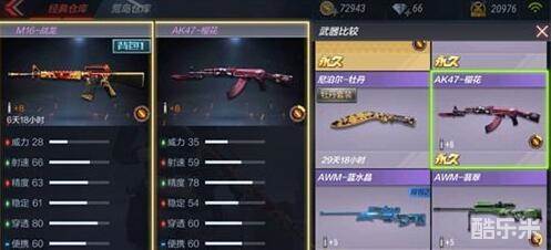 如图,M16-战龙和AK47-樱花相比,前者威力和精度弱于后者,射速、稳定、穿透和主弹夹数强于后者,其他数据保持一致,即:刚枪作战,后者最佳;消耗或穿透作战,前者最佳。
