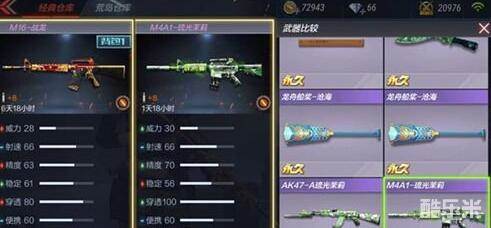 如图,M16-战龙和M4A1-琉光茉莉相比,前者稳定高于后者,威力、精度和穿透低于后者,其他数据保持一致,即:两者不具备可比性,后者呈碾压趋势。