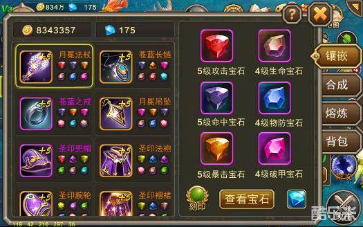 39级左右会开放宝石跟夺宝两个系统,前者在装备上镶嵌宝石从而获得大量战力,后者通过夺取别人的宝石碎片合成宝石,是宝石的主要产出途径。每件装备一开始都只开放三个孔镶嵌宝石,前期只要拿到宝石什么都不用管全镶嵌在宝石孔里,那么战力一下子会提高很多。等开放的宝石孔全满了,有条件的玩家可以去开孔,每件装备最多有6个宝石孔。而暂时不想开孔的玩家,可以通过合成、熔炼这两种途径获得更高级的宝石,替换原本镶嵌在装备上的宝石,越高级的宝石战力加得越多,所以你懂得!另外悄悄告诉你一个秘密,每件装备镶嵌3块5级宝石有惊喜哦!