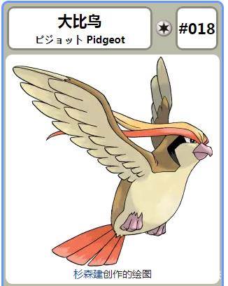 大比鸟是冷静而自信的,面对敌人它会展开巨大的美丽翅膀威吓敌人。它的强大攻击使它成为许多训练家的首选。