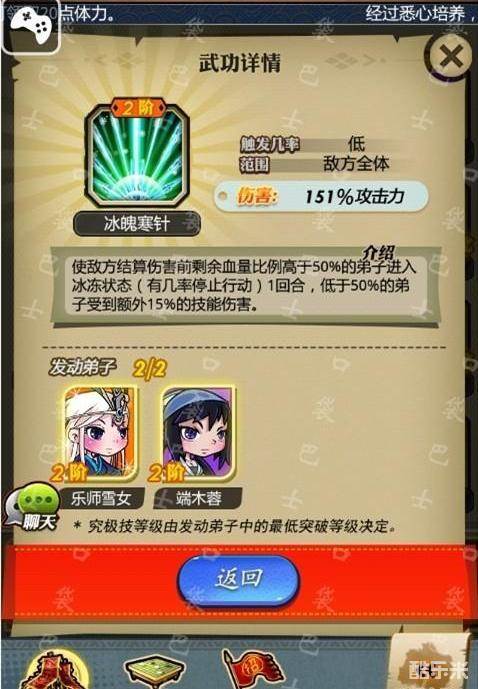 乐师技能发动语:“朔风凛凛,终不离兮!”触发概率还行,但使敌方冰冻的概率太低。