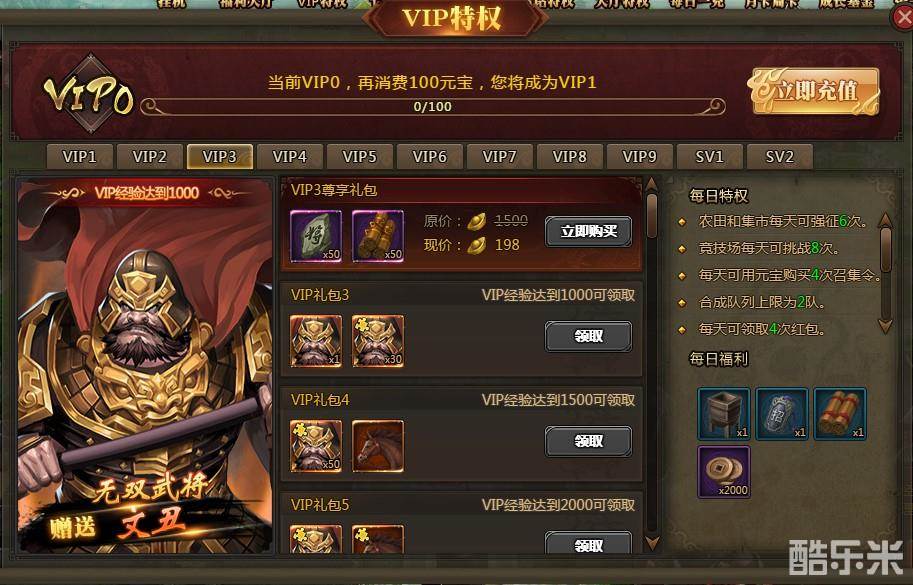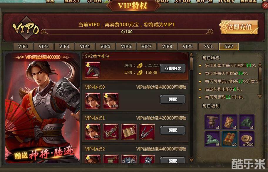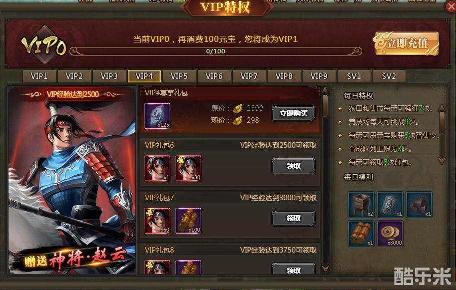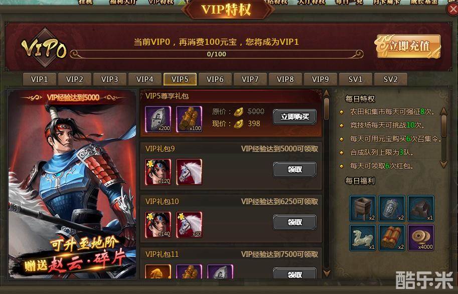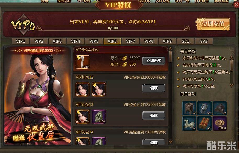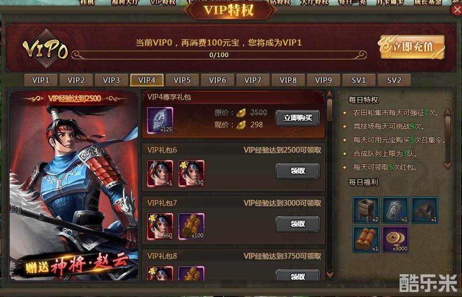 4、VIP每日礼包:每日可购买1次对应等级的每日礼包