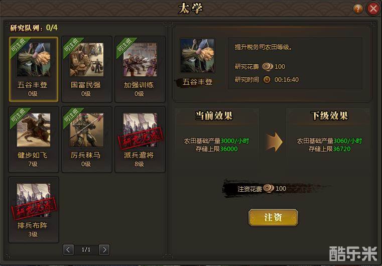 太学是您研究科技的建筑,在这里进行投资,可以获得各种各样的提升