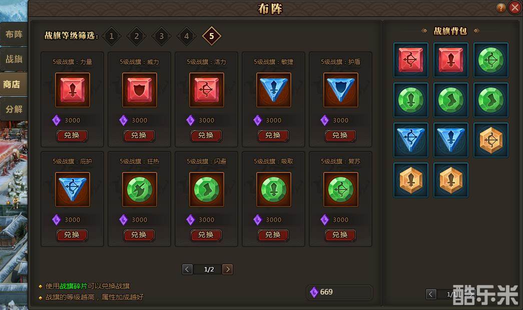 战旗碎片的获取来源:商城、每日必做、霸王复仇
