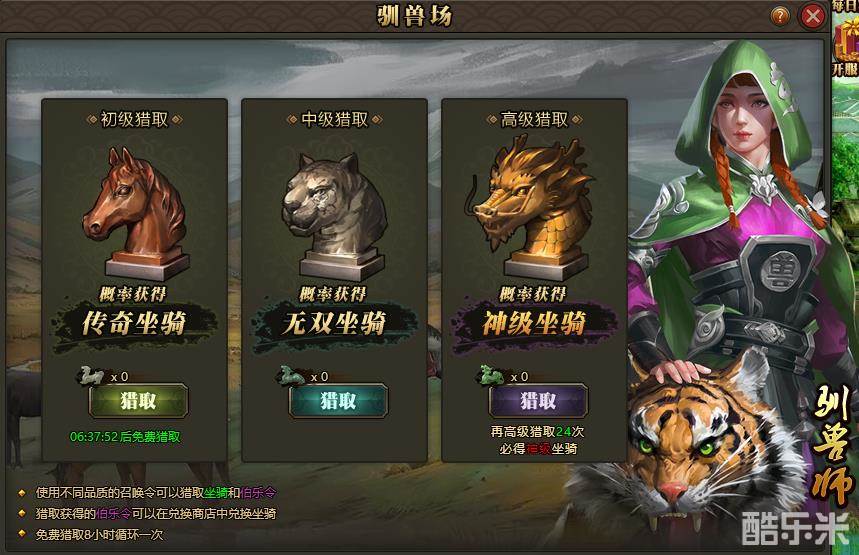 使用不同品质的召唤令可以猎取坐骑和伯乐令