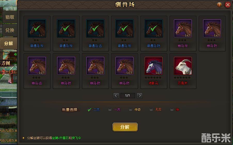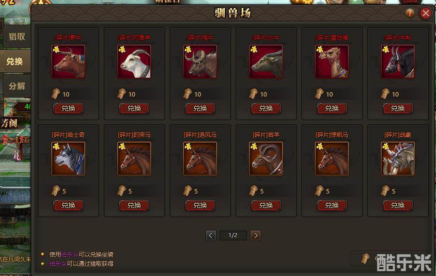 猎取获得的伯乐令可以在兑换商店中兑换坐骑