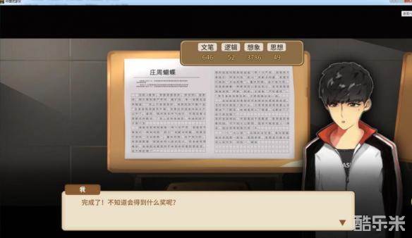 最后说点作文金奖比较难,而且还很看脸,所以需要SL,建议在倒数第10回合的那一次做这个成就,选到一个初始想象高的开局,然后风格能随到豪放不羁基本就稳了,选择灵感的时候无脑选想象,最后想象能怼到2000多,感觉非常爽,我完成的时候是20/2/8/3+豪放不羁。