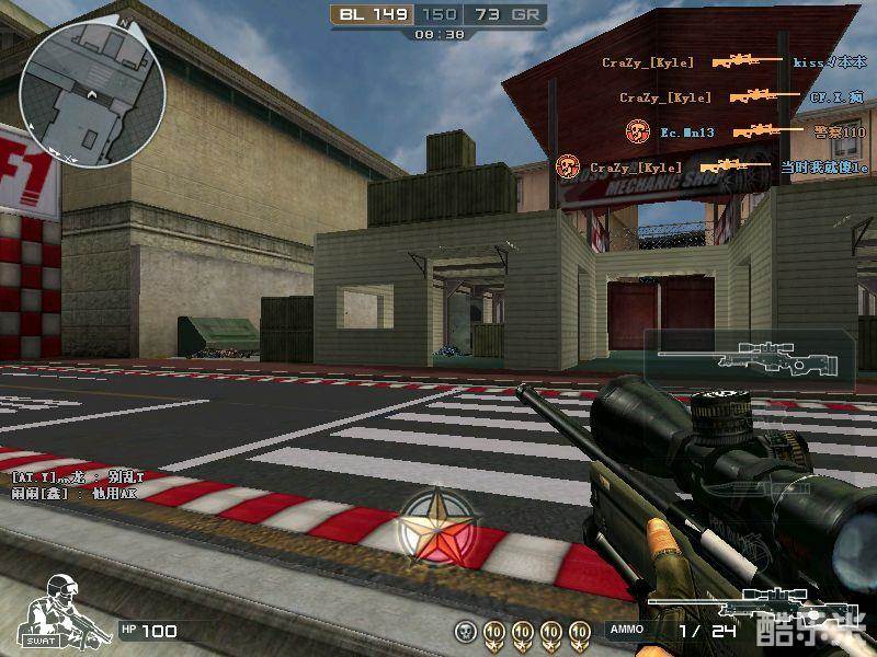 2.在AWP对AWP时,不想死得很惨的话就先不要用手枪了,只能用屏幕最中央的大概位置来瞄准(这才是真正的盲狙!)不过这种盲狙非常难练,比较土的办法是在屏幕中央贴块胶布什么的,比较BT的就是直接按Alt+Tab或开始键切回桌面再切回去,利用屏幕中央闪动的鼠标来瞄准,这种方法还是跟BOT多练练吧,毕竟胜之不武,也免遭人骂.