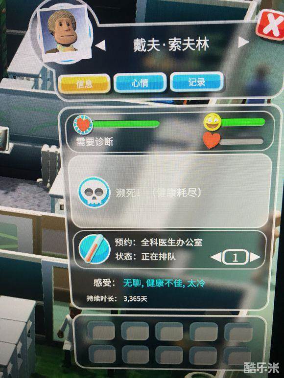 死了还在全科排队,轮到他是医生就会卡住,而且无法将他赶走,只能编辑房子强制踢出,可是踢出之后依然会去其他的可是排队。