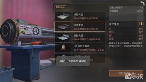 3、钢板夹层:护甲值+1.0,免暴率+2.0%