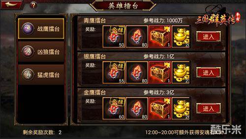 此次更新的“擂台”是难得的跨服PVP竞技精英盛会,各位主公等级达到80级之后,便可在快捷入口进入,选择擂台等级且击败守关NPC即可获得奖励进入擂台,与战区精英跨服争雄!没有升到顶级的主公也不用担心,每个等级都拥有匹配的关卡,打败守关BOSS,每日两次高额奖励等你来拿,每天12:00-20:00可额外获得一定数量的安魂石哦!