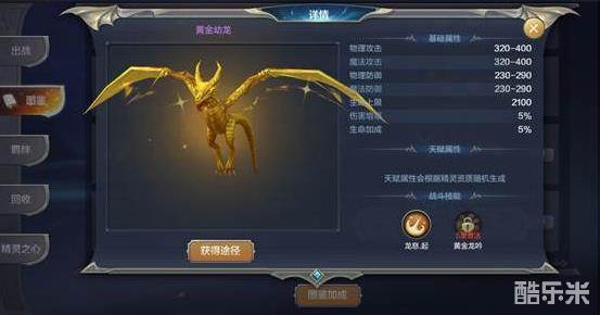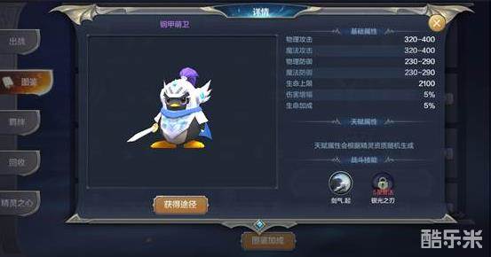这两只紫色精灵的攻击力加成位于中游,但是防御力提升却是最高的,非常适合弓箭手,同时黄金幼龙的“黄金龙吟”技能和钢甲萌卫的“银光之刃”技能可以使主人在5秒内收到的伤害减少25%,这就再度强化了弓箭手的生存能力。