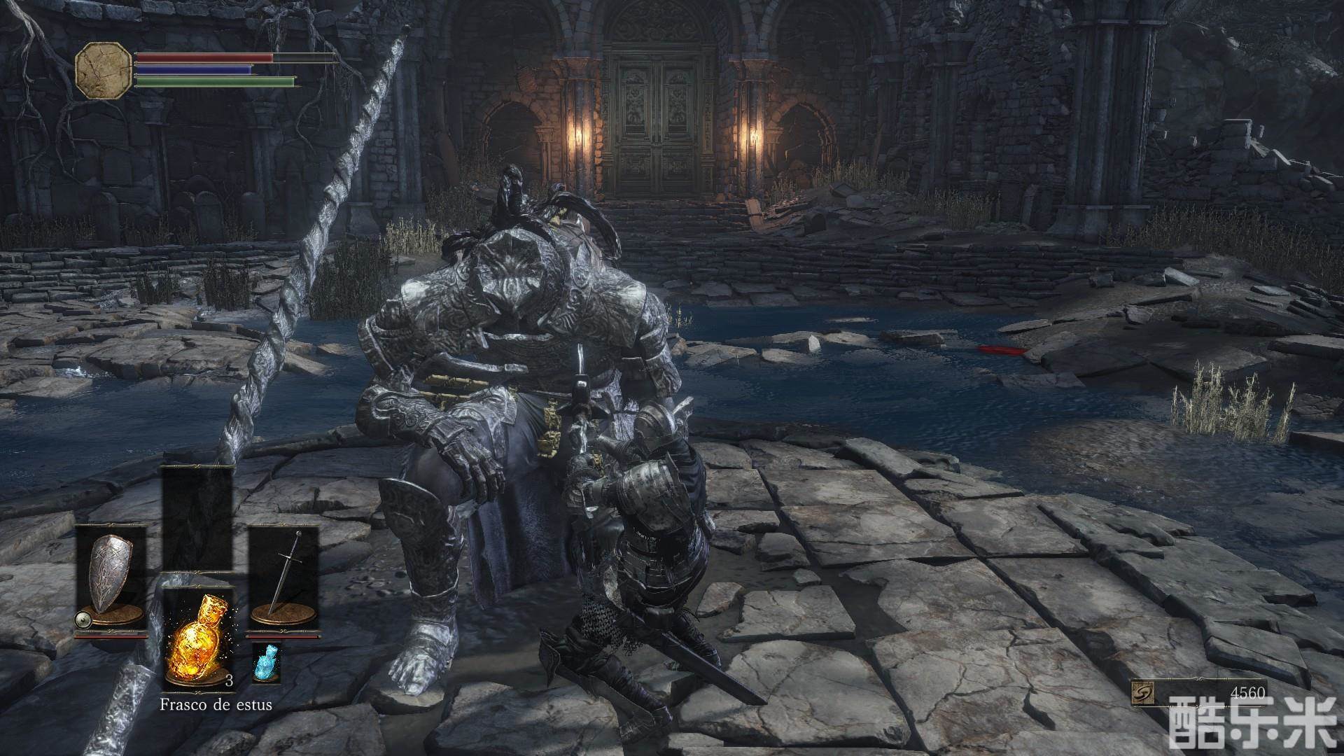这个boss其实相当好打。相当套路。卡这个boss的朋友我个人觉得可能是心太急,太想莽。不顾底下深渊瘴气就拼着打,结果死了。或者,磨蹭半天不出手结果越拖越难。这个boss进门开场往右跑,跑到手哪里是不会触发boss战的。对着镯子打几下,通常可以打烂一个。然后boss碎了第一个镯子百分百会往后退,往前追击可以跑攻一下第二个镯子。然后boss会把手抬起来要砸,看好手压下来那下翻滚躲过,继续砍几刀通常都碎了。最麻烦的是第三个,因为很喜欢藏在瘴气里,这时候切记不要上去莽。看boss出手,等镯子出来就上去砍。看boss什么出手就躲过。神怒往前拼命跑就行。小骷髅先解决掉近身几个,如果boss镯子出来了,就打镯子别管骷髅。就是这么套路。当然有一种可以不触发boss战的方法打仅限于第一次进入还没有触发boss战的时候。跑到右手哪里用说书人喷,喷完看到boss血条在掉,就可以出门吃饭了。