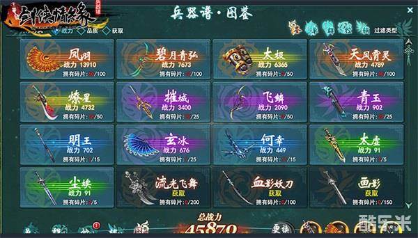 逍遥游江湖《剑侠情缘兵器谱》兵器系统详解