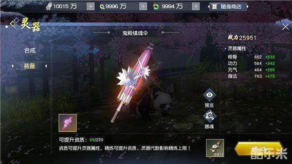 灵器精炼:通过消耗灵器合成材料,可提升灵器的资质