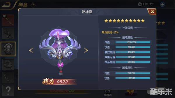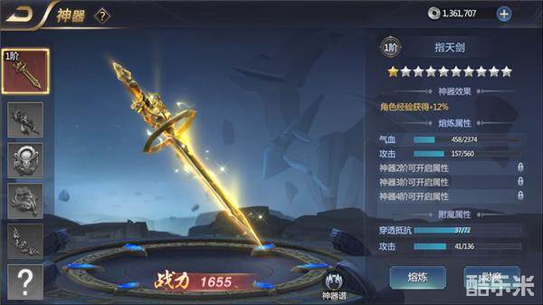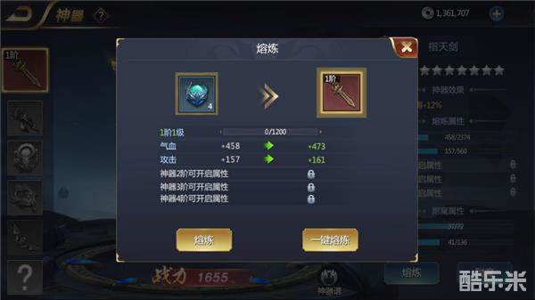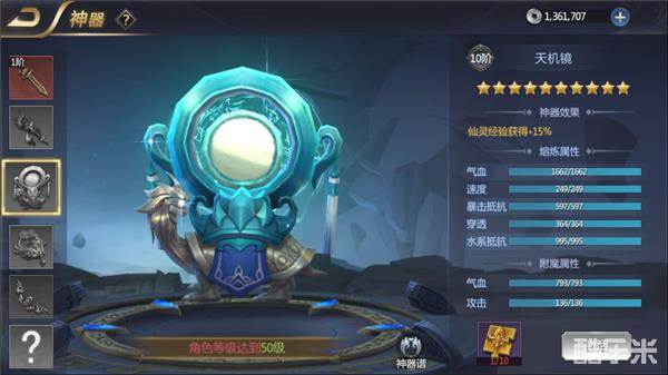 当然神器的属性不是一成不变的,可以通过养成来提升神器的属性以及加成效果。