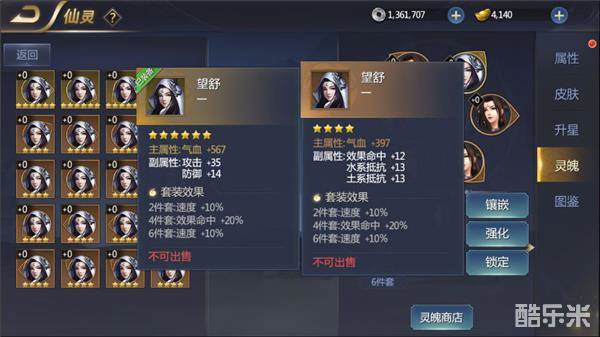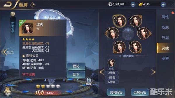 仙灵身上有六个灵魄栏位,每个栏位只能携带对应位置的灵魄,单个灵魄能提供不错的属性加成,相同系列的灵魄同时携带还能提供额外的两件套、四件套和六件套属性加成。