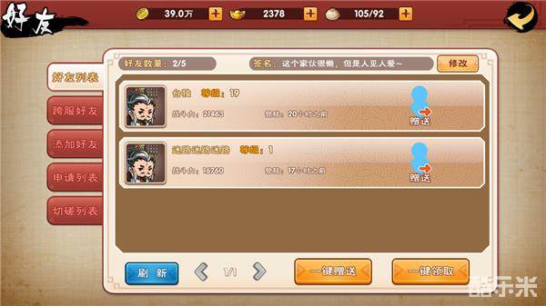 那么,没体力了咋办呢,有朋友扛着你跑啊!玩家可以在好友系统中点击“一键赠送”或者“一键获取”就可以给小伙伴赠送体力或者收取体力啦。