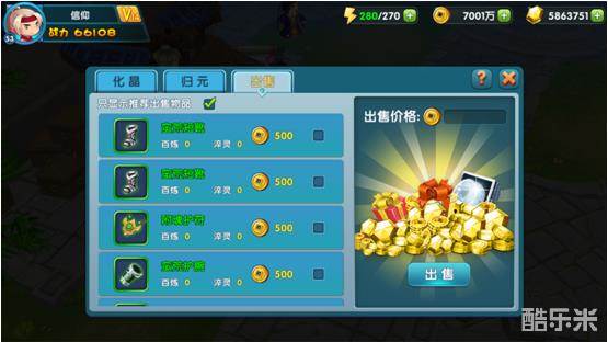 缺少钱币的玩家可以在出售页面卖掉自己不需要的装备。