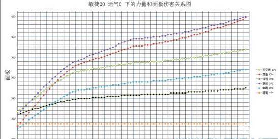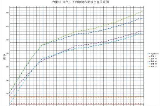 首先我们另力量为18,敏捷为20,运气为0,在20-99的区间内测试面板得到如下的图像: