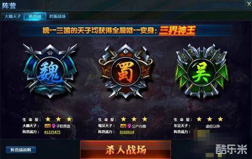 魏蜀吴三国统一,阵营战不再开启,统一后将会开启跨服战。