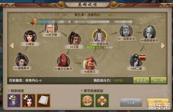 其次是额外宝箱奖励,每个章节共有10个关卡BOSS可以挑战,第三,第六,第十关,挑战成功后,可以额外领取宝箱奖励,里面包含大量的经验,银两,英雄拜帖碎片等奖励。挑战的关卡层数越高,得到的奖励也就越丰富。