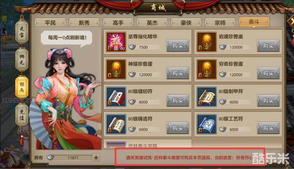 手工装备打造符,珍兽培养,暗器培养,神器培养所需要的道具等等,非常的多。所有的这些道具,都需要通关英雄试炼指定的关卡层数,才可以购买。