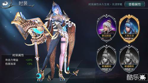 冥术师的时装名为“人鱼之泪”,点击时装头像即可自动穿上,属性永久生效。