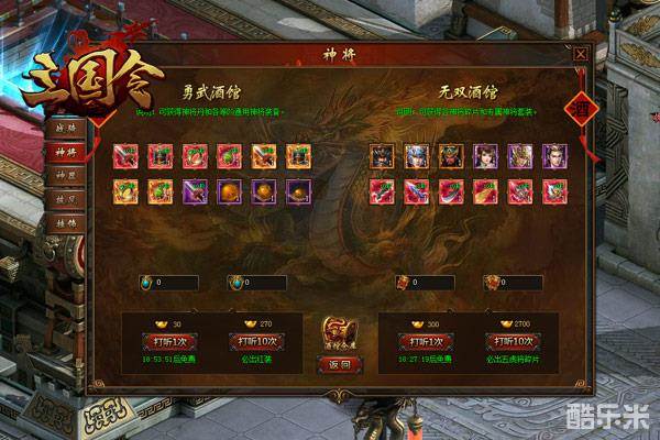 勇武酒馆:可获得神将丹和各等阶通用神将装备