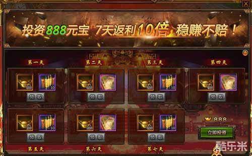 只需投资888元宝,7天连续返利10倍!稳赚不赔的买卖就问你干不干?立即投资,做个聪明的主公吧!