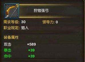 蓝色装备狩猎强弓,只有猎人职业才能装备。
