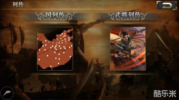 列传系统分为两大模块,分别为国家列传和武将列传。