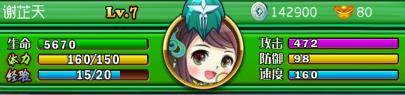 v 下面的部分为数值显示信息,从左上角到右下角逐次是生命、体力(体力每五分钟自动回复一点,最大回复150点。)、经验、攻击、防御、速度,在数值的中间区域显示,玩家可以自由更换自己的头像。