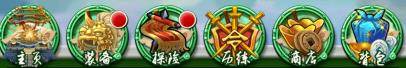 v 下面为功能显示按钮,分别是主页,装备,探险,历练,商店,背包,点击不同的功能按钮,则进入不同的功能界面。
