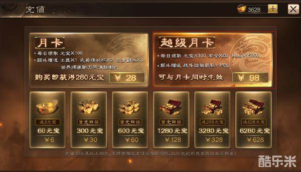 (超级月卡需要额外花费98元进行购买持续时间为30天,除开军令,每天可额外获得100元宝、15000的民兵及武将战斗经验15%的加成)