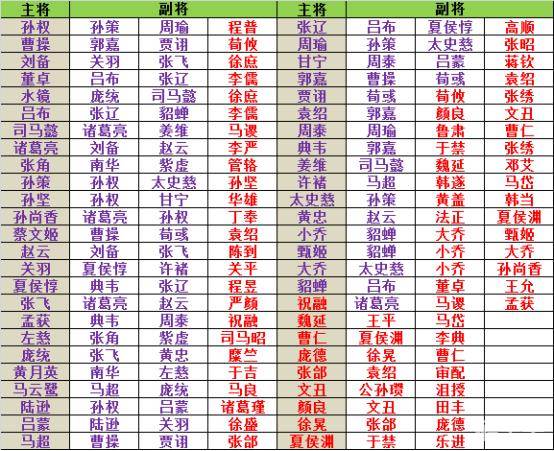 《三国一统天下》副将搭配详解