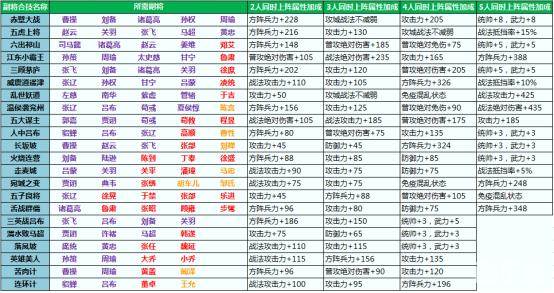 副将组合:字体颜色为武将品质