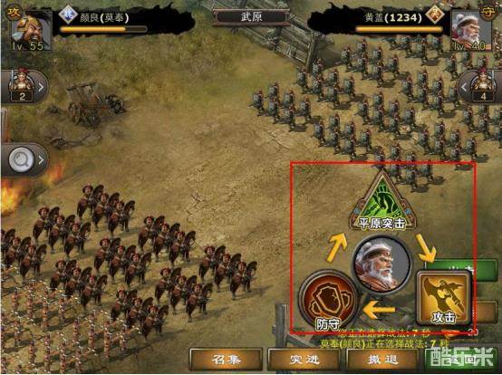 开战后可以选择相应的战术来克制对方的战术。点击战术中间的头像,即可释放该武将的技能攻击。(注:出战前兵力不满无法释放战法)