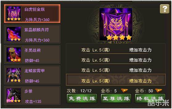至尊洗炼(效果强,花费金币进行洗炼)。