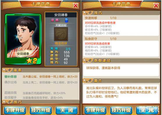 在卡牌信息界面,除了可以查看卡牌的星级、资质、属性、天赋技能等基础属性外,还可以查看该球员的宿命、技巧、获取途径等详细信息