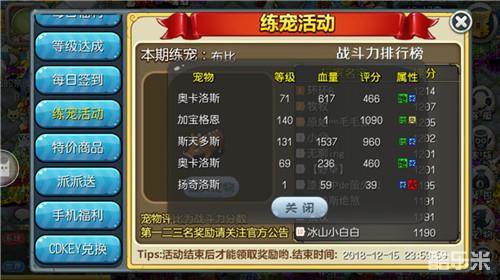 石灰大大要抓紧时间提交你的“布比”参加评选呢,凡是战斗力第一、第二、第三名的均有丰厚奖励回馈!战斗力居首位的可以得到一只凯恩;战斗力第二名的玩家是则可以得到一只任意颜色的新暴龙;而第三名的玩家也可以拿到一只任意颜色年兽!福从天降,人人都有,只要是参与了本次练宠活动的玩家,也可以得到一个绑定的6小时3倍智慧果!还等什么,心动不如行动吧!