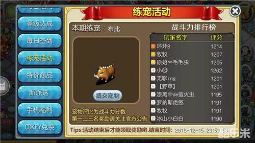 《原始守卫战》经典复刻,新版本强势开启练宠活动!新版本中的练宠活动只针对布伊系宠物“布比”,捕捉坐标北岛霍特尔(608,208)附近。练宠活动最需要引起大家注意的地方是:本次活动只允许提交1转140级的“布比”,不足1转140级宠物均无法提交哦!想要练宠的大大可要注意了,别把你的极宠炼成了废宠呀!练宠活动到2018年12月15日24点结束,提交的宠物数据以活动界面为准!