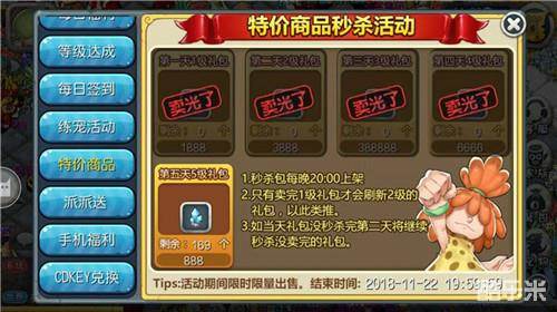 特别要注意了,秒杀礼包每晚20:00分开始抢购。每个玩家限制购买一个,礼包及开出水晶不可交易。1级礼包销售完毕以后才刷新2级礼包,以此类推。如当天礼包没有秒杀完,第二天将继续秒杀没卖完的礼包。心动不如行动,赶紧抢起来!