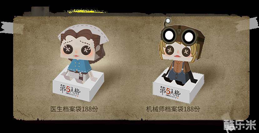 18年11月15日至19年1月31日期间,玩家若成功办理招商银行《第五人格》联名信用卡,只要完成开卡并绑定掌上生活,即可获得1次游戏周边礼品抽奖资格。官方一共准备了376份礼品,其中“医生档案袋”188份,“机械师档案袋”188份。档案袋目前尚未对外发售,珍惜度非常哦~!让这些可爱迷人的角色周边,随时陪伴在你身旁。