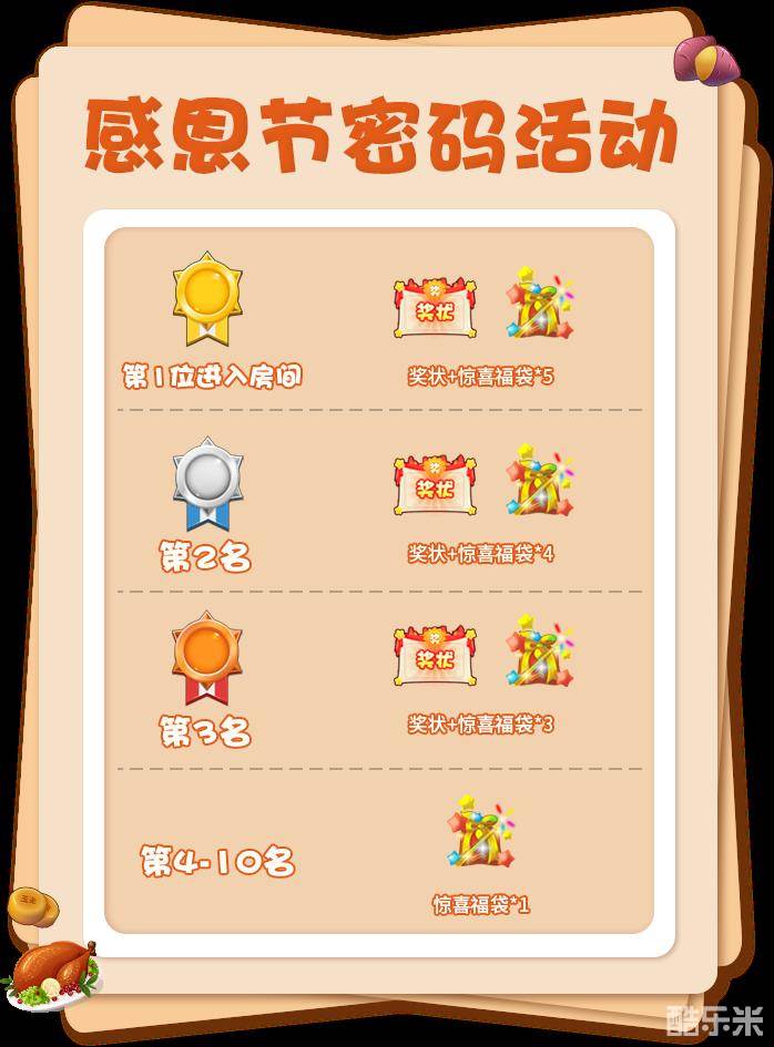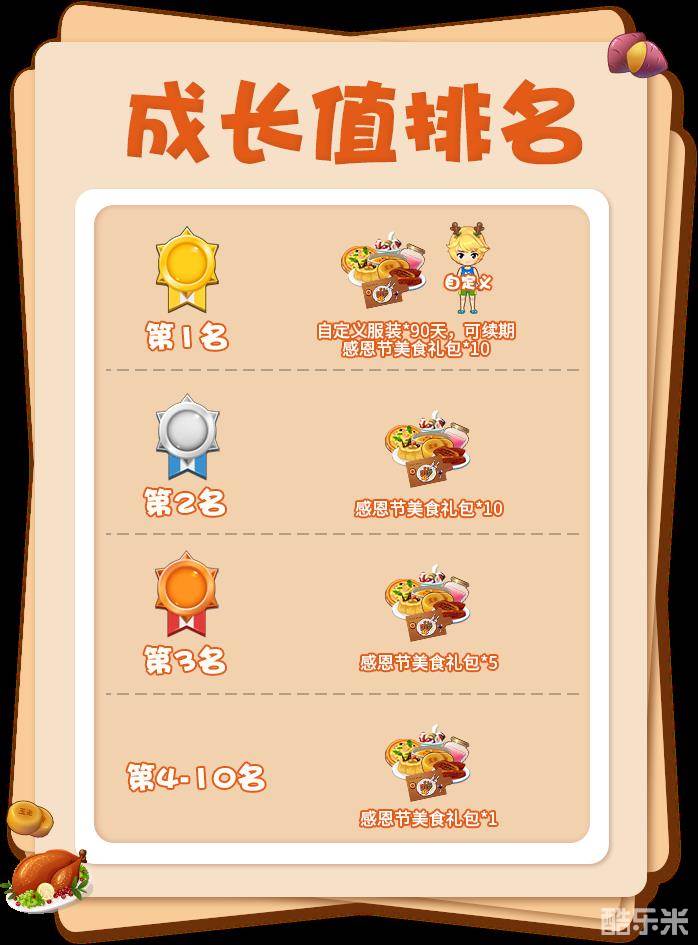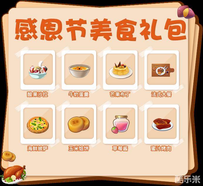 感恩节美食礼包(奖励均为绑定):