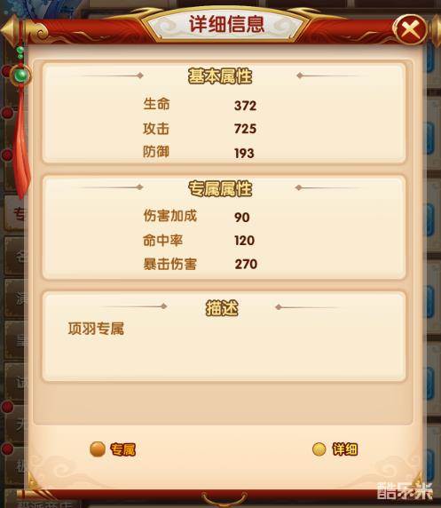专属装备有十分好的基础属性,同时武将穿戴其专属属性,可以激活专属属性,获得极大的属性提升和外形上的升级!如下图1:未穿戴专属武器时的项羽形象,图2:穿戴专属武器时的项羽形象。可以非常明显看到穿戴专属武器后的项羽,武器更加绚丽!