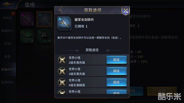游戏内只能通过在世界地图上击杀野怪获得装备碎片。