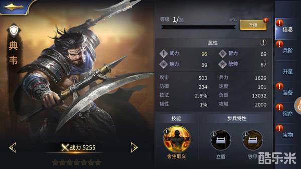 在介绍武将之前,先让我们来浏览一下武将的属性: