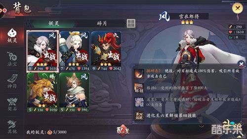 援军方面以输出为主,风师是妖典解锁的首个稀有妖灵,自身的范围输出不俗,振奋触发压血线能力特别强,配合沙行鸟和飞羽客可以收割敌人。飞羽客也是前期的强力之选,虽然是3星但伤害技能都很爆炸,个人十分推荐。